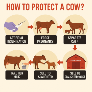 Ah yes, the argument that deserves a standing ovation. We protect cows… by making them pregnant artificially, separating calves, taking their milk, and then selling them for slaughter when they stop producing.