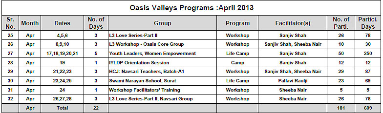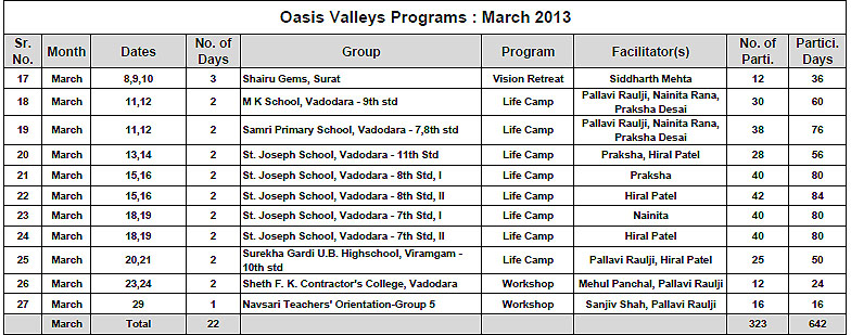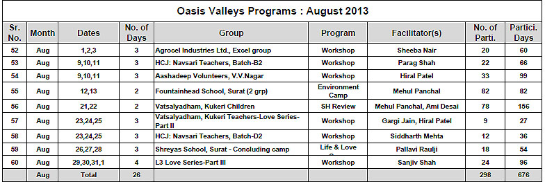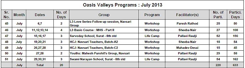 • 17 teenaged students from Navsari, chosen from Oasis Life Camps, were invited for Advance Leadership Development Camp organized during 3rd and 4th August, 2013.
