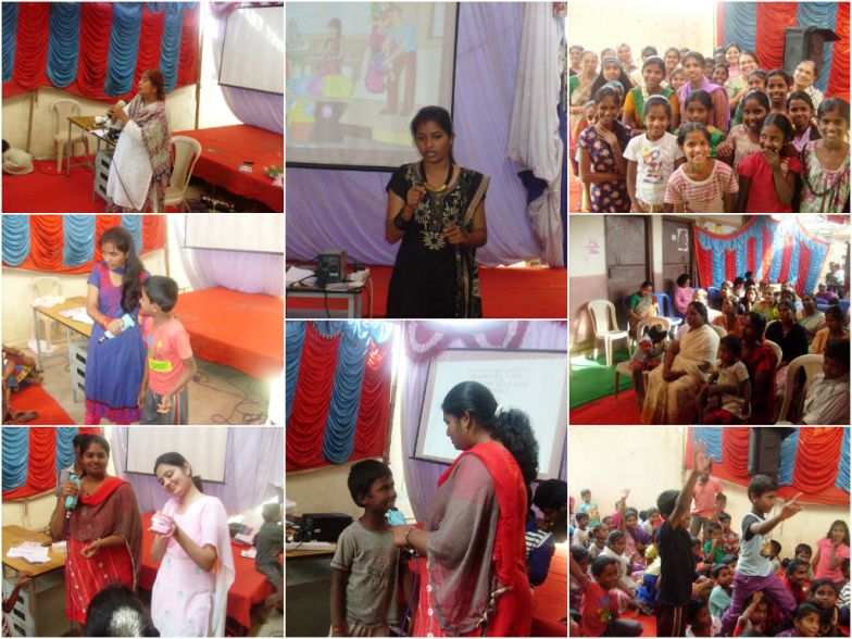 During 28 & 29th December, special camps were organised at Viveknagar Slums of Bangalore city, by young volunteers of ASHA team. In 3 camps for various groups, 50 children participated in General Hygiene Camp, 25 young girls participated in Adolescence Workshop & 18 women participated in a talk with Lawyer, Mrs. Nagrathna on Legal help to Women in Domestic Violence. |