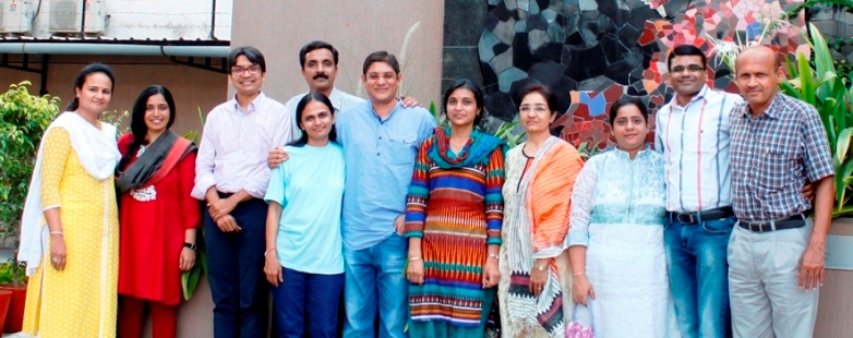Bottom Photo: From left - Anuradha Mehta, Sheeba Nair, Siddharth Mehta, Pratiksinh Parmar, Praksha Desai, Sanjiv Shah, Purvi Naik, Shobha Gandhi, Bijal & Jigar Shah and Yogesh Patel.