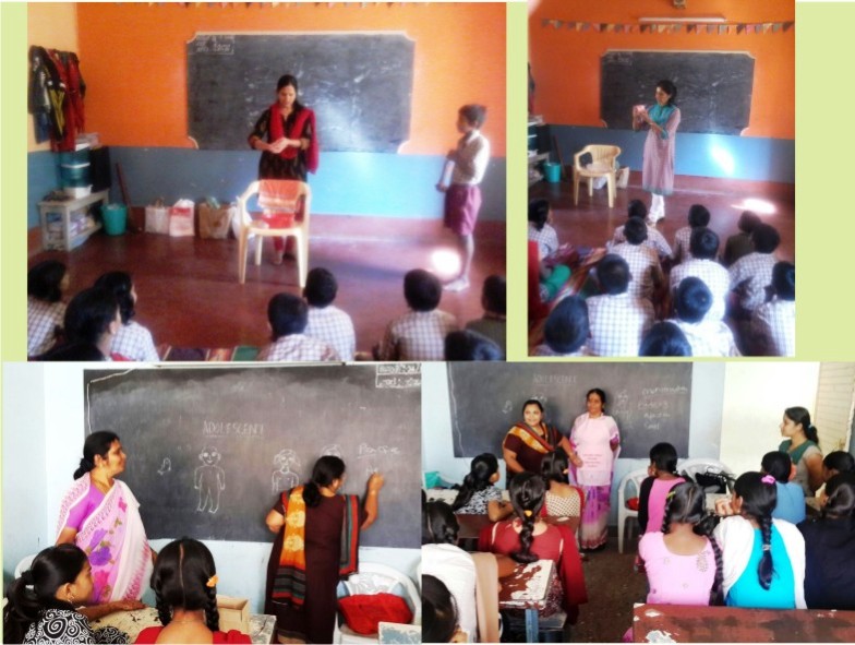 On 24 November Mrs. Harshidaben, Mrs. Yashoda and Mrs. Divya conducted ‘Adolescence Health’ program for students 7th std. of Raghavendra school in Malleswaram, Bangalore. 30 student participated in it. (Two bottom photos). |