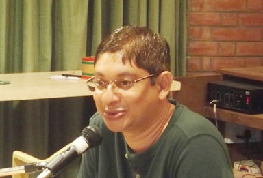 Photo above: Sanjiv Shah, in the center with participants, launching the book