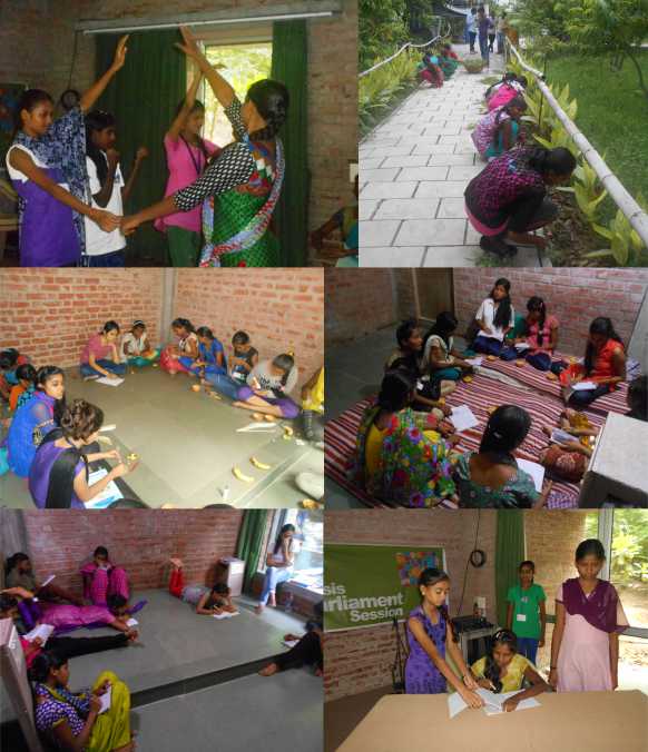 During the camp, girls were offered 15 different sessions to attend on daily basis. The sessions and their faculties were: Leadership Development - Praksha Desai; My Life is My Choice - Purvi Naik; Free Exercises - Jaydeep Thoria; Mountain Jogging, Drama & Mime - Nikunj Parmar; Mountain Jogging, Music & Vocal Music - Sweta Patel; Farming & Landscaping - Dinesh Vasava and Origami & Pot Painting- Bhumi Patel. |