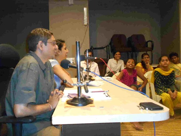 Photo on left: Facilitator Sanjiv Shah (left first) explaining concepts.