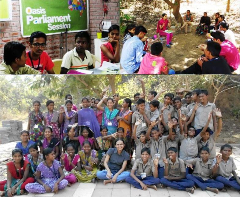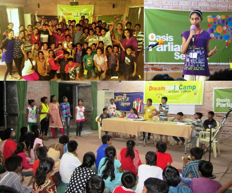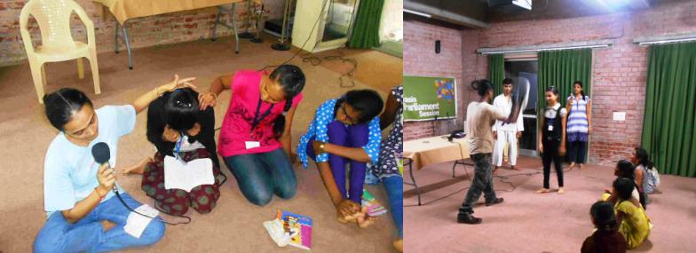 (Above collage) from top left, clockwise - Navsari Students with facilitator Purvi Naik; Participant putting her views with freedom in an open D. I. Camp; Parliament in action-from Charlie & ASHA ahmedabad D. I. Camp |