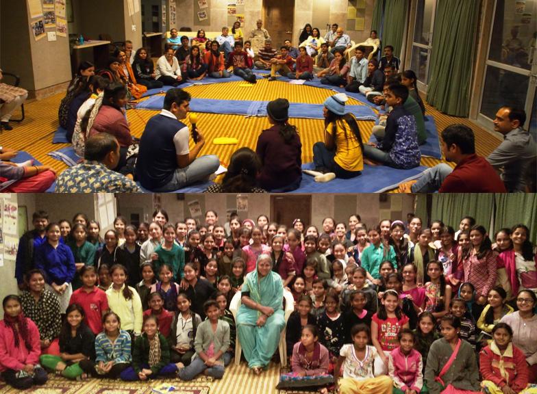 Bottom Photo - Girl Leaders from all over Gujarat with Sindhutai Sapkal during their Dream India Camp under Saamarthya Project |