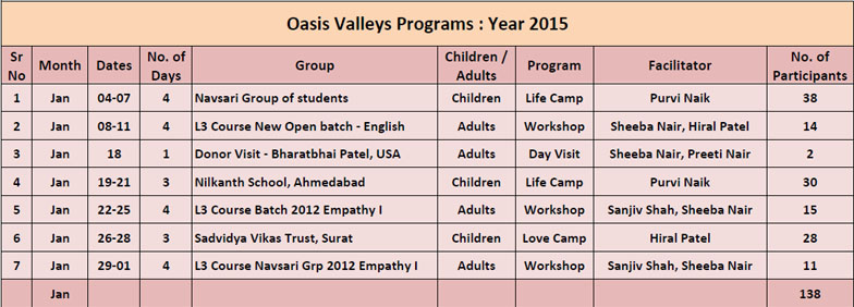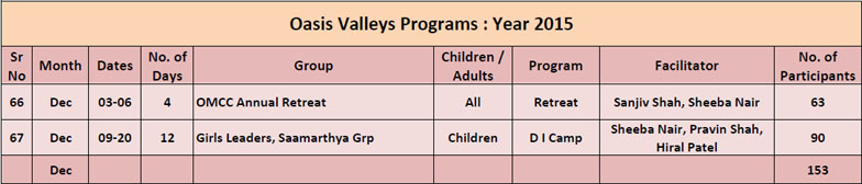 • Construction of the last phase at Oasis Valleys Institute completed. Major additions are