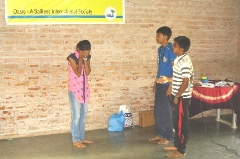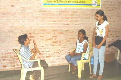 3 Day Oasis Life camp was held for 6th – 8th standard students from 23rd to 25th April, 2013 at Samarth Vidya Mandir School – Helpers of the Handicapped, Kolhapur, Maharashtra. The camp was facilitated by Mayuri Gohil (Oasis) and Hiral Patel (Oasis). Camp included kids from different social background including socially disadvantaged community (Fase Paradhi) and physically challenged students from the HOH hostel studying in this school. Camp was divided into two groups – Noor (40 students from 6th Standard) facilitated by Mayuri Gohil and Naunihaal (45 students from 7th and 8th standard) facilitated by Hiral Patel. |