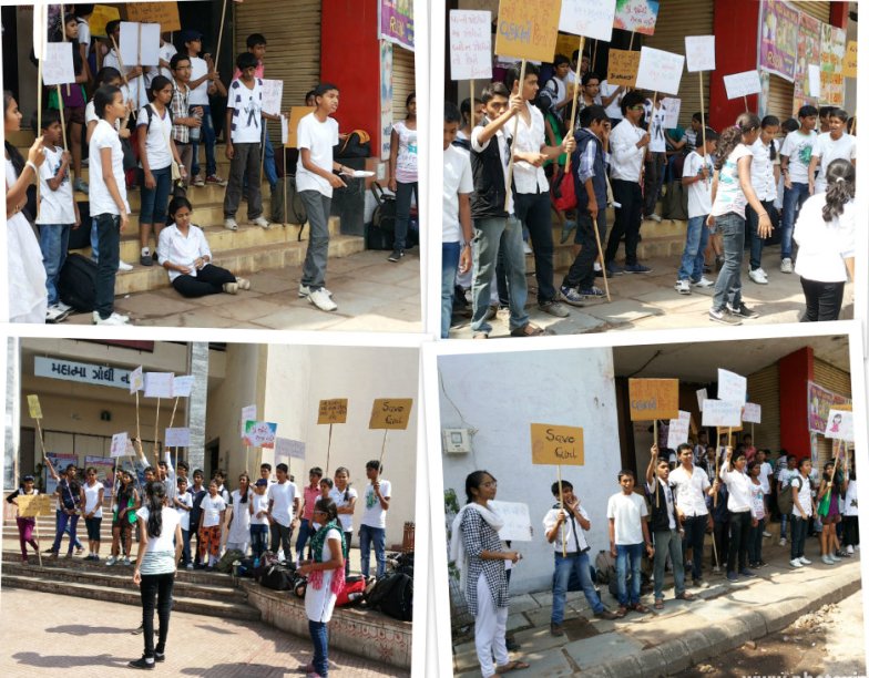 The rally was taken out on 21st April from Mahatma Gandhi Nagargruh to Railway Station in Vadodara city. With street plays at four various places, slogans and playcards, students tried to create awareness about the condition of Indian Women in our society. |