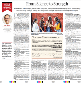 For gifting a powerful example of collective goodness to our country. For being a role model of integrity and practical idealism to the youths. For your ever-unfailing positive encouragement. For sowing the dream of scaling Oasis programs & to reach 25 million kids of India. For such a high quotient of responsiveness when we seek your guidance. We thank you with utmost sincerity.IAS , Writer, Nexus of Good